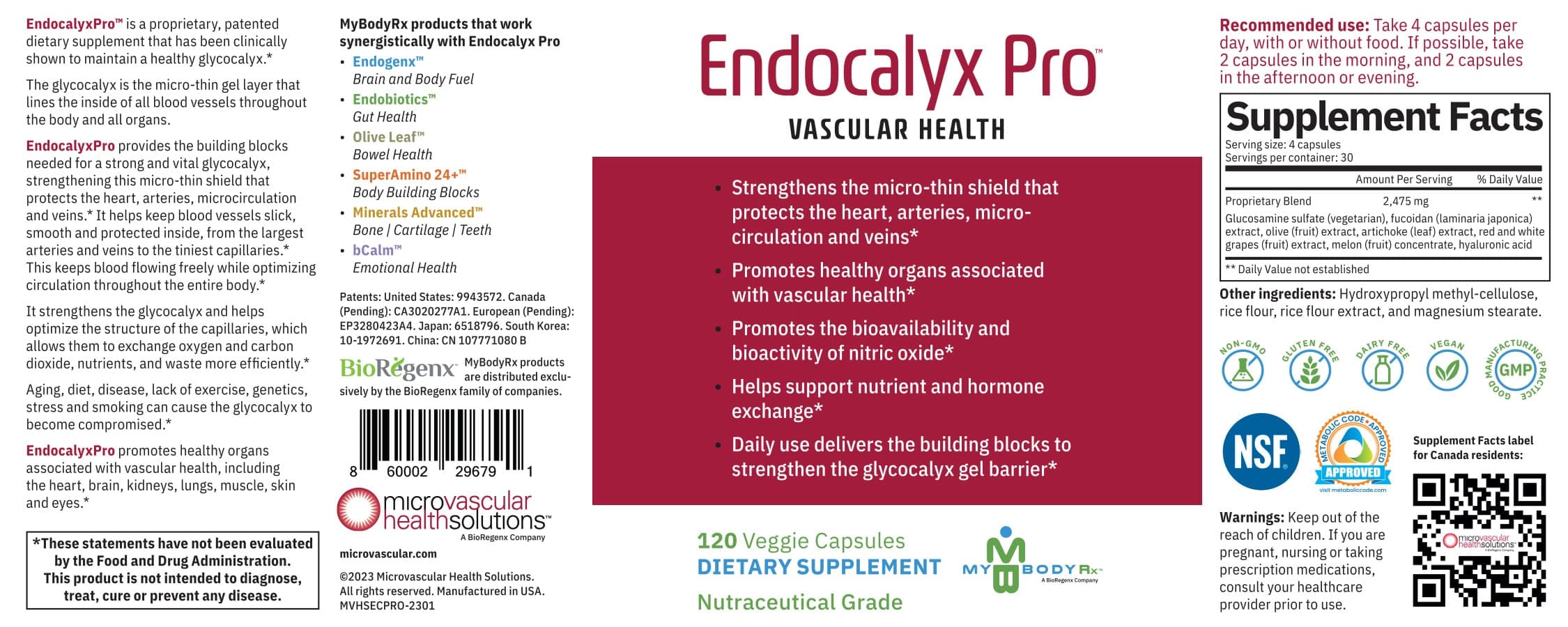 Endocalyx Pro is a patented formula has been clinically shown to improve the health of a transparent lining inside the capillaries. Ingredients include a specific synergistic group of organic fruits, vegetables, and seaweed—ingredients found from the corners of the earth where people are known to live longer than that of people in North America—that can help revitalize your endothelial glycocalyx and promote healthy capillary health. Three classes of compounds include: